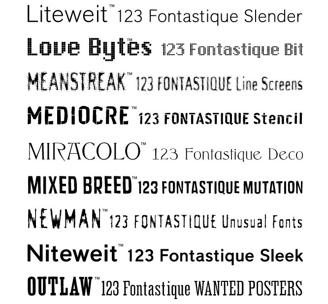 Each Line Sample represents a Family of Fonts included in the full TypeArt® font bundle.